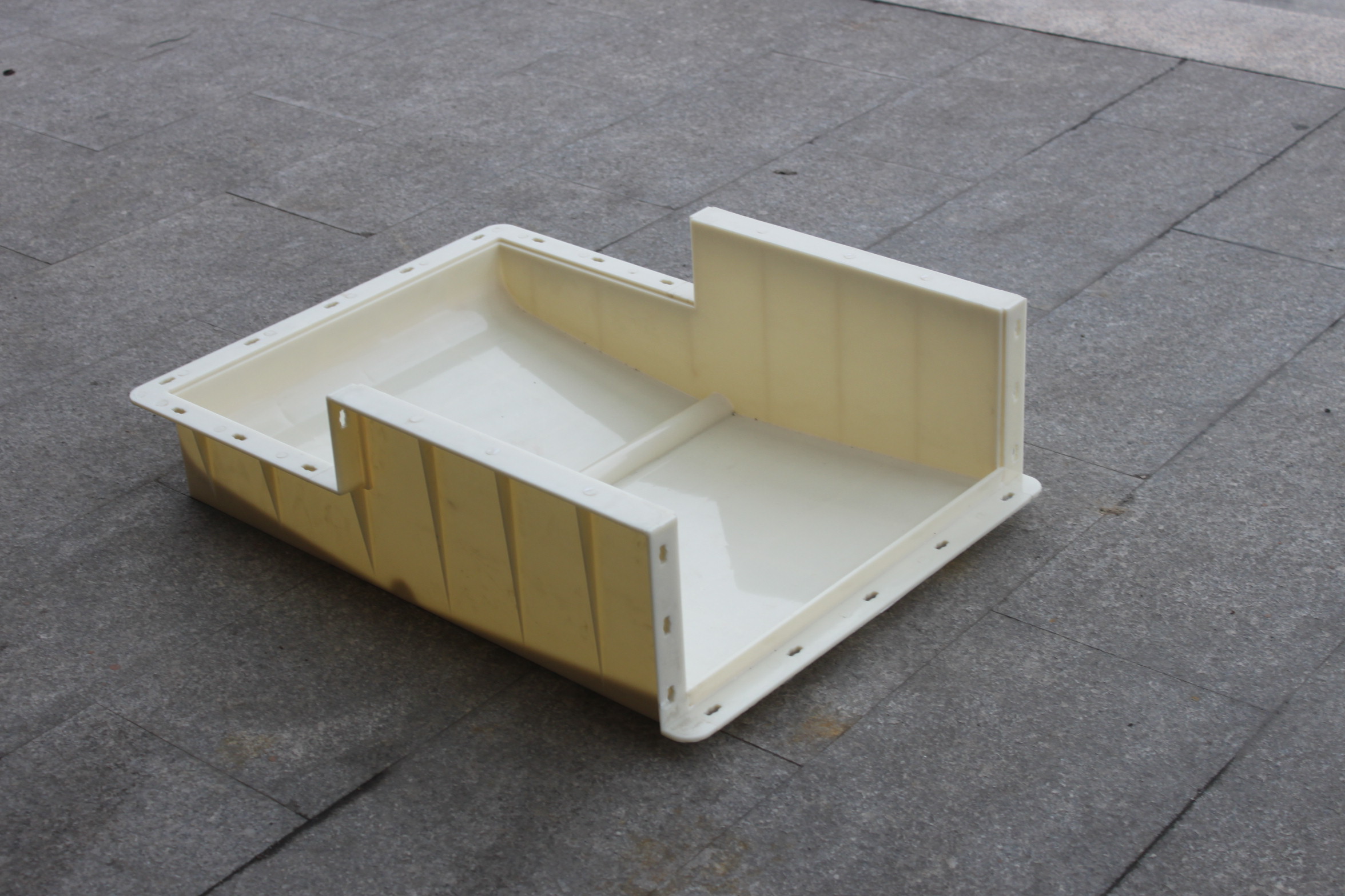 麗臣塑業所生產的73型高鐵遮板模具,針對客戶需求開發了2款不同后蓋的模具,平蓋型及法蘭蓋型。所有遮板組成部件均設置安裝槽設計可自由拆裝,包括遮板模具主體、上蓋和后蓋,非常人性化的融入到遮板預制工序過程中。