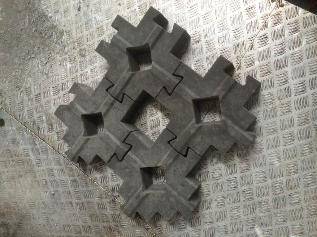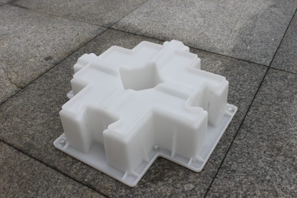 此鎖塊護(hù)坡模具為新型設(shè)計開發(fā),相比常規(guī)使用的工字連鎖護(hù)坡模具來說,其連鎖結(jié)構(gòu)及組合方式稍顯難度,直觀的從它的外觀就能全部體現(xiàn)其個性特色。當(dāng)然除了長的怪,其表面各種高低凸起的水泥棱條,對于水流沖擊的減緩效果也是極其出色的,經(jīng)過組合之后,連鎖護(hù)坡模具所制護(hù)坡磚四合一拼接更可打造五個獨立植草空間,對于營造一個真正的生態(tài)護(hù)坡工程來說也錦上添花,粗壯的植物根系扎實穩(wěn)定的維系著地表與護(hù)坡層,這就是我們需要的。