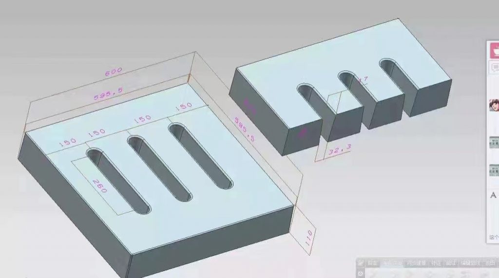 三孔雨水蓖塑料模具,模具采用米白色PP材質制成,模具尺寸為60cm*60cm*11cm,模具開始設計尺寸為60cm*60cm*10cn,因為需要充分達標,所以模具厚度尺寸實際尺寸比設計尺寸厚1cm,模具采用三孔設計,具體尺寸如下設計圖。主要用于道路下水使用,且厚度厚,可以承載較大的壓力。