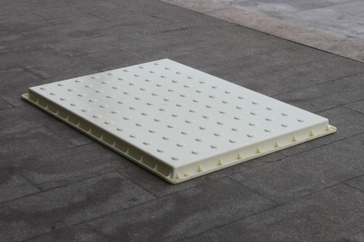 疏散平臺蓋板模具主要以表面凸起圓點設計,由于蓋板成品主要使用于地鐵疏散平臺,所以凹凸圓點圖案可以起到防滑功效,避免行人在急忙之中產生滑倒等傷害因素。
