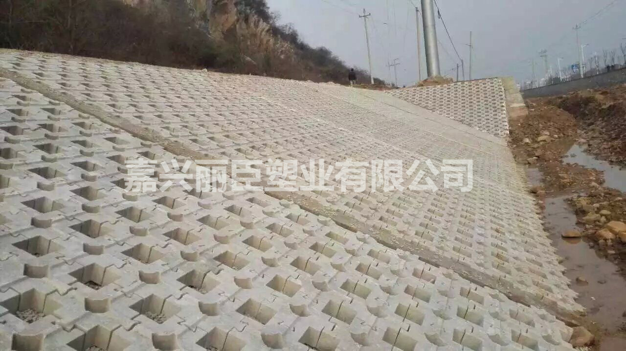 2.嵌草式水利植草護坡模具還有一個相當大的有點在于,每個護坡模具中空方式制造,在以每四塊護坡磚連鎖成型之后再增加一個大型的嵌草空格,在保證了護岸牢固的同時,大大的加大了植草面積,鞏固護堤。